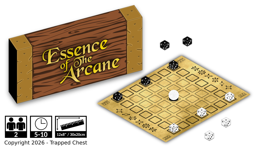 If you want to play test Essence of the Arcane, the prototype version is available on Tabletop Simulator, in the Steam Workshop, Here!. Additionally, a free print & play version is available in the “Downloads” section of this site.